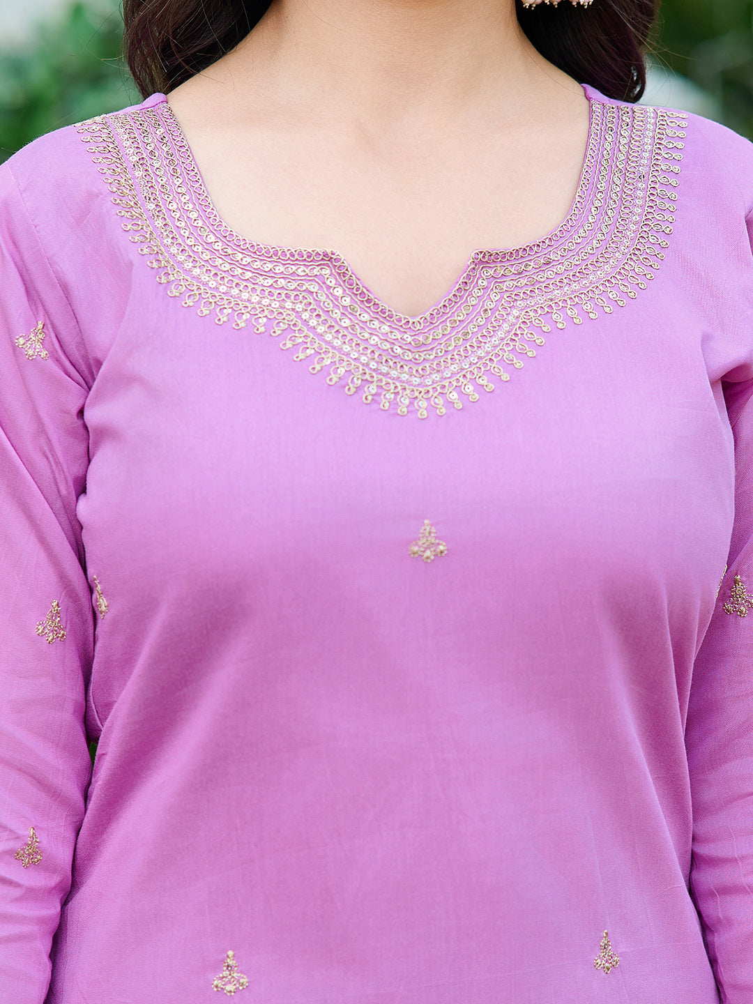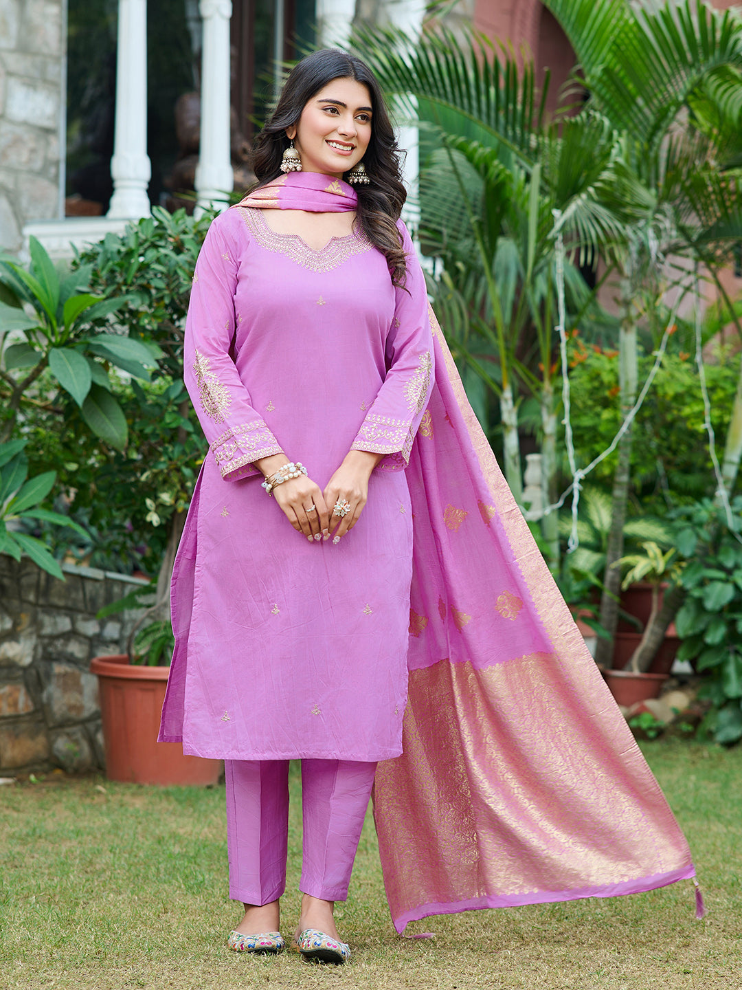 Improbable Lavender Pure Rayon Embroidery Suit Set
